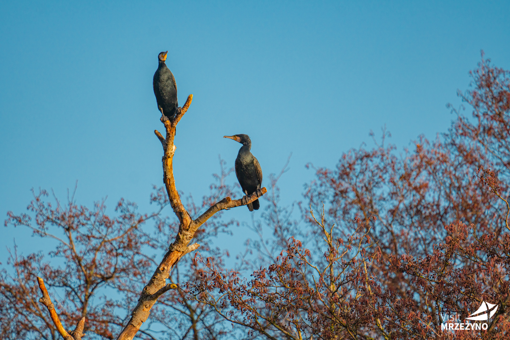 Ujście rzeki Regi to wyjątkowe miejsce dla ptaków. Zobaczysz tu liczne kaczki, latem zwykle krzyżówki, ale zimą! Czernice, lodóweczki, uhle, oprócz kaczek łyski i kokoszki, zdarza się nur czarnoszyi, perkozy i perkozki. Dominują oczywiście mewy. Od popularnych śmieszek, pospolitych i srebrzystych, aż po ogromne mewy siodłate. Im wyżej z nurtem rzeki tym mniej morsko. Zobaczysz tu między innymi zimorodki i remizy. Królem ujścia Regi jest niepodzielnie kormoran. Ten, nie wszędzie lubiany, ptak tworzy w okolicach Mrzeżyna niewielkie kolonie. Zawsze wzbudza zachwyt majestatycznie susząc skrzydła na portowych urządzeniach.
